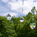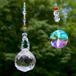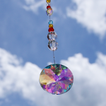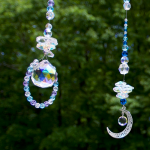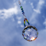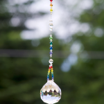 クリスタル製のガラス玉を使いストラップのように作成したものを窓辺など太陽の光が直接当たる場所にぶら下げると、クリスタルで乱反射した光が虹の粒となって部屋に入ってきます。